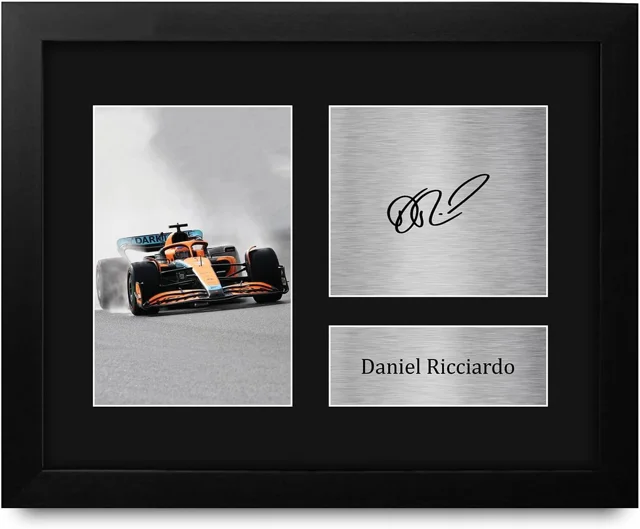 قاب کلکسیونی دنیل ریکیاردو شامل یک تصویر حرفهای، پلاک فلزی با امضا و پلاک فلزی با نام راننده است. ترکیب طراحی کلاسیک، فریم مشکی و هویت مسابقهای این راننده، قاب را به انتخابی خاص برای کلکسیونرها، علاقهمندان موتوراسپرت و دکوراسیون رسمی اتاق یا دفتر کار تبدیل میکند.