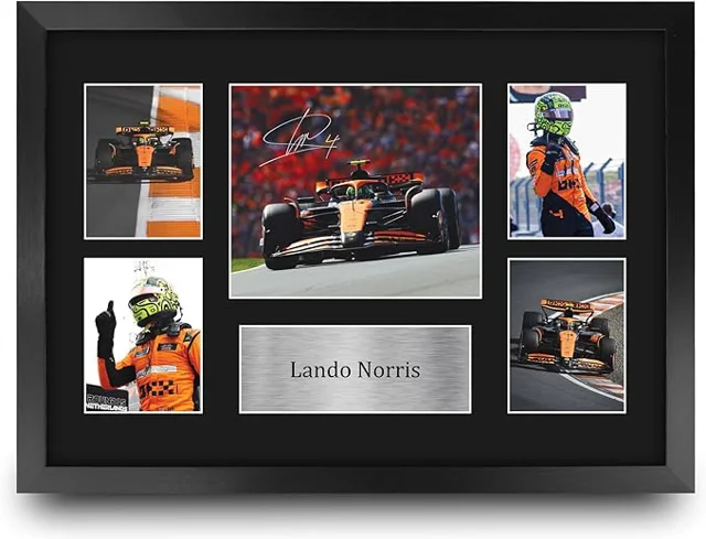 قاب کلکسیونی لندو نوریس شامل یک تصویر حرفهای، پلاک فلزی با امضا و پلاک فلزی با نام راننده است. این قاب ادای احترامی است به مهارت و سابقه حضور لندو نوریس در مسابقات فرمول یک. ترکیب طراحی کلاسیک، فریم مشکی و هویت مسابقهای او، قاب را به انتخابی خاص برای کلکسیونرها، علاقهمندان موتوراسپرت و دکوراسیون رسمی اتاق یا دفتر کار تبدیل میکند.