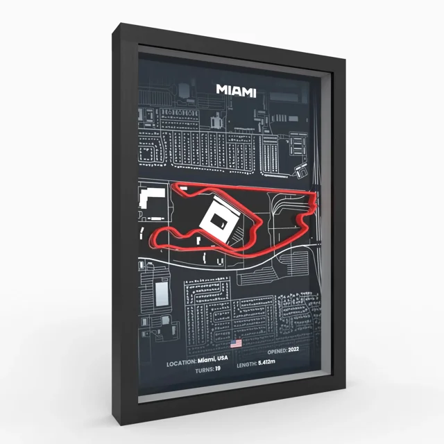 قاب سهبعدی پیست فرمول یک میامی آمریکا با استفاده از پرینت سهبعدی دقیق طراحی و تولید شده و مسیر رسمی پیست Miami International Autodrome را بهصورت برجسته نمایش میدهد. این قاب انتخابی خاص برای علاقهمندان فرمول یک و موتوراسپرت است و با طراحی مدرن و مینیمال خود، گزینهای مناسب برای دکوراسیون منزل، اتاق کار یا هدیهای متفاوت برای طرفداران F1 محسوب میشود.