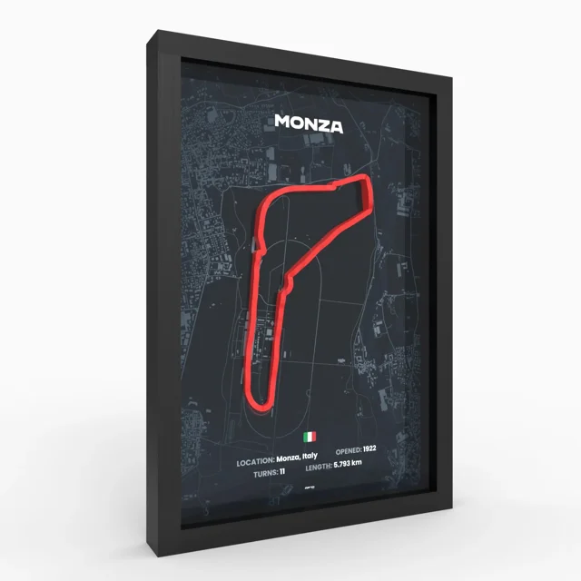 قاب سهبعدی پیست فرمول یک مونزا ایتالیا با استفاده از پرینت سهبعدی دقیق طراحی و تولید شده و مسیر تاریخی پیست Autodromo Nazionale Monza را بهصورت برجسته نمایش میدهد. این قاب انتخابی خاص برای علاقهمندان فرمول یک و موتوراسپرت است و با طراحی مینیمال و حرفهای خود، گزینهای مناسب برای دکوراسیون منزل، اتاق کار یا هدیهای متفاوت برای طرفداران F1 محسوب میشود.